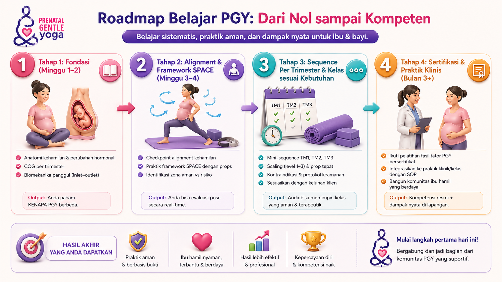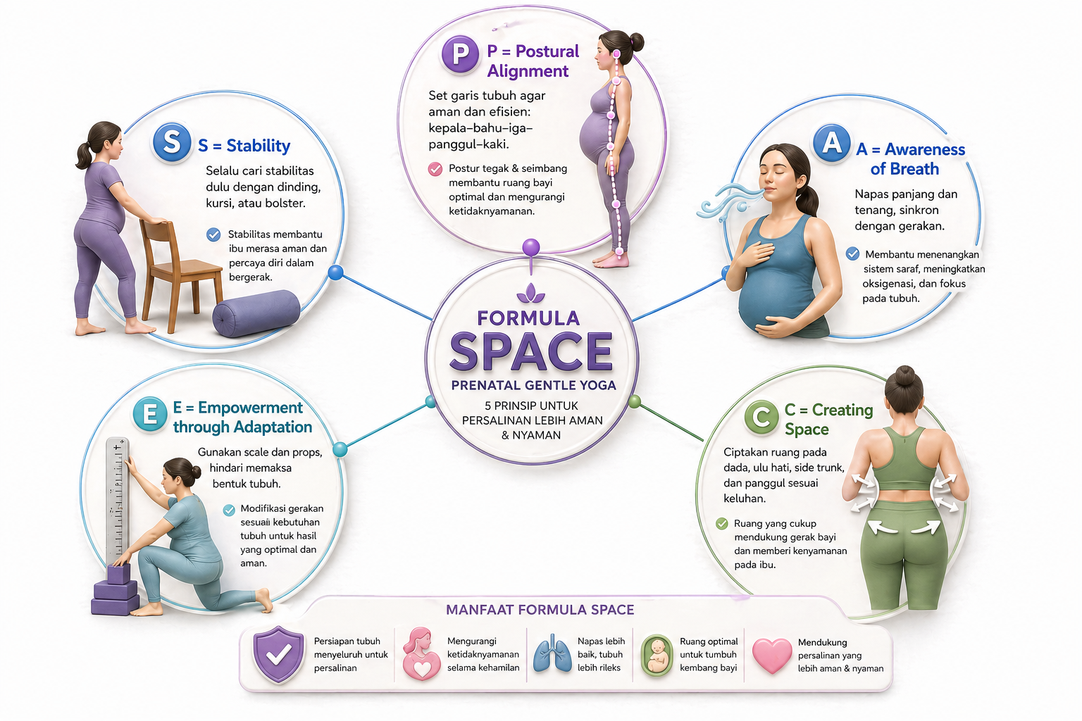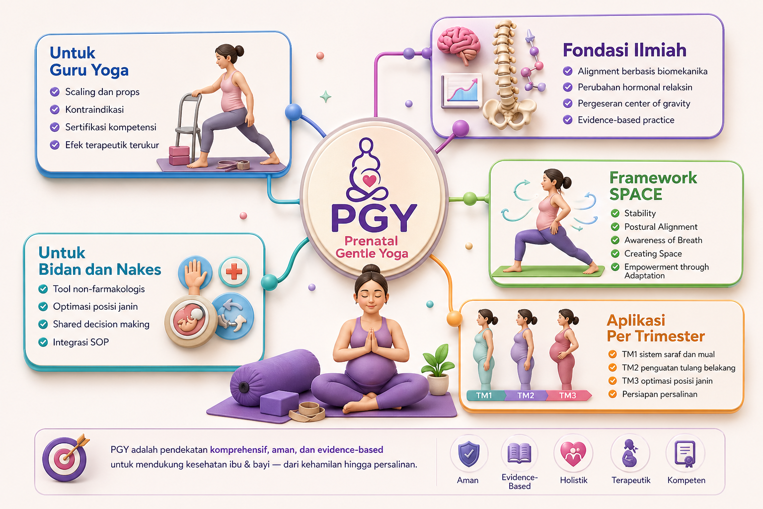 Standar keselamatan prenatal: alignment, scaling, props, dan efek terapeutik yang terukur.
